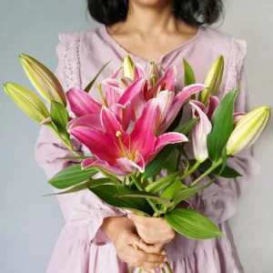 These fragrant lilies are bound to mesmerise you. Choicest blooms straight from our farm. The lilies will come in their bud form